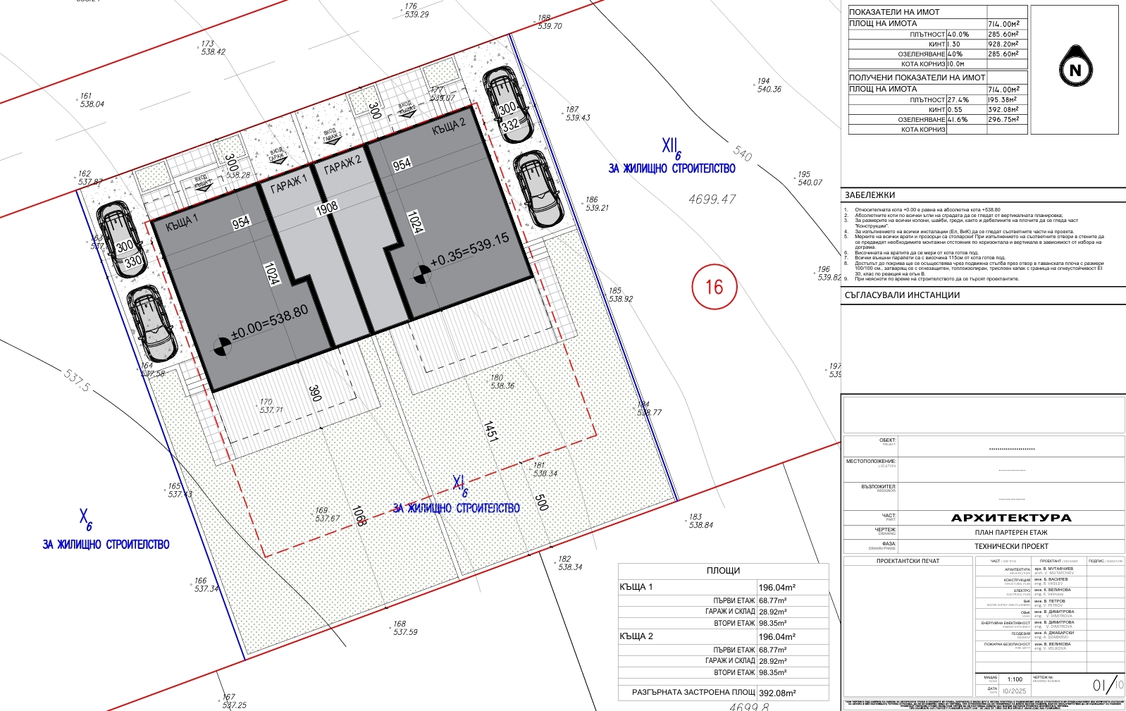 Проектът "Terra Nova Zhiten" включва изграждането и реализацията на ОСЕМ броя еднофамилни къщи на четири самостоятелни парцела (УПИ).